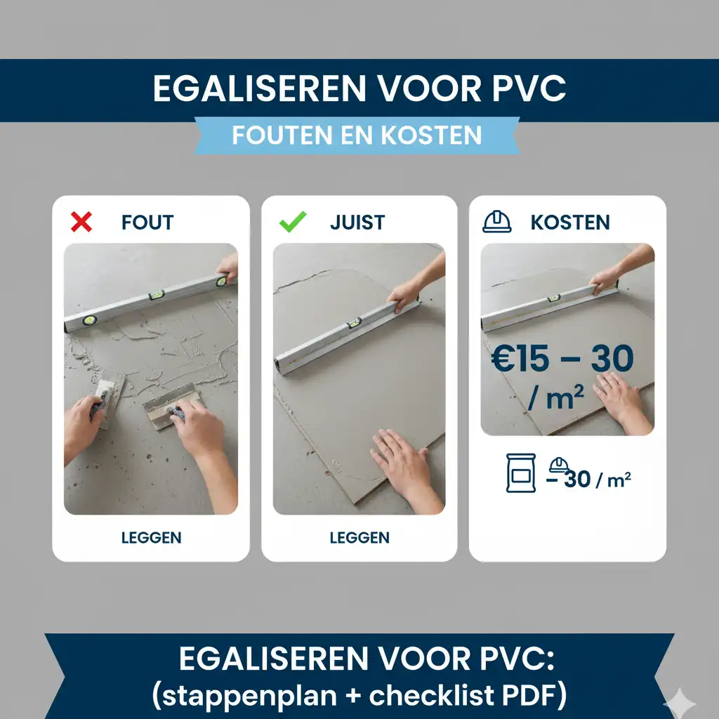Gemiddeld liggen de kosten tussen €5 en €15 per m², inclusief materiaal en arbeid. Het investeren in goede egalisatie betaalt zich terug door een langere levensduur van de PVC vloer en minder onderhoud.